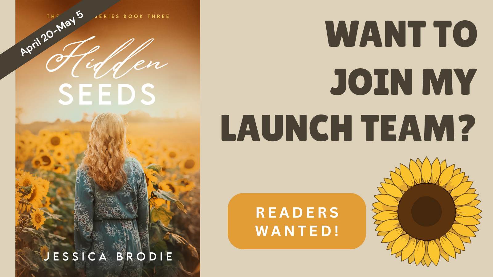 Successful books don’t just happen. It takes support from readers behind the scenes to help. If you’re interested in being a part of the team who will help launch Hidden Seeds, please email me. I’d love your help!